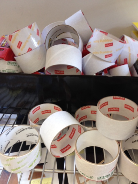 Tape. What can artists do with tape? Students in the Sculpture 1B class are working with packing tape as their primary material to create forms that reference the body. They are "casting" their body and thinking about how the body occupies space. The essential question for the project is, "How do artists map the space …
